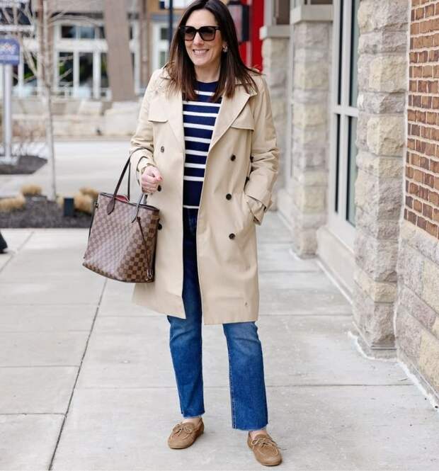 Весной и осенью тренч отлично смотрится в образах с джинсами, брюками, свитерами, свитшотами, теплыми трикотажными платьями или юбками, а летом, например, в дождливые дни или после грозы тренчем можно дополнить образы с легкими платьями, футболками с короткими рукавами.