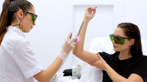 ✓ Лазер разрушает пигмент татуировок, осветляя пятна и вымывая краску из кожи.