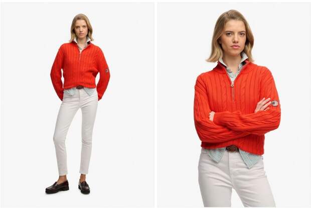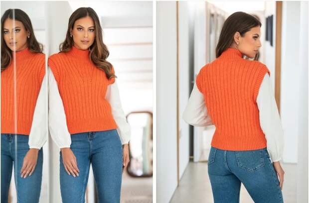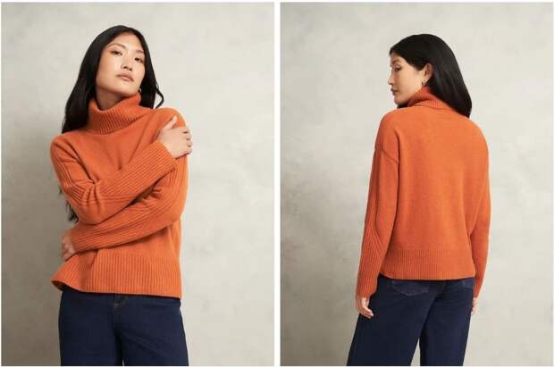 Если не хотите отказываться от красок в холода, выбирайте оранжевый. Этот теплый оттенок дополнит любой гардероб и не будет выглядеть слишком броско. Попробуйте включить его в образ аккуратно — например, начните с оранжевого вязаного свитера, который будет согревать вас не только цветом, но и материалом.