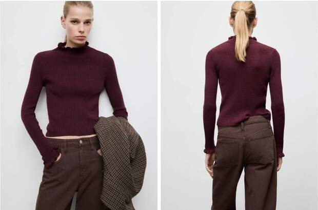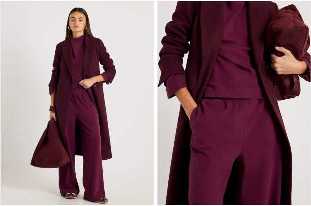 Этот цвет подойдет тем, кто хочет сделать зимний гардероб ярче. Варианты на зиму — бордовая водолазка или, например, стеганый длинный пуховик.