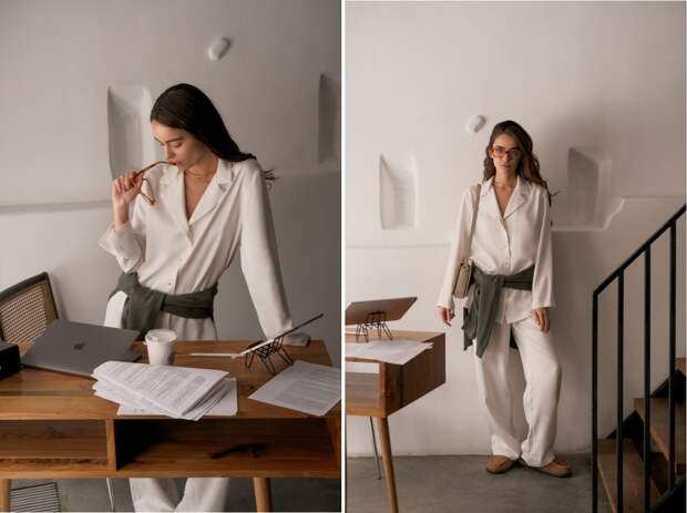 Эта вещь вне домашних стен встречается не так часто, ведь кажется, что с ними сложно составить уместный образ на каждый день. Но для вещей бренда CLO нет ничего невозможного и модная формула все та же – добавляйте к ним объемный свитер, кардиган, классическую белую рубашку. Такой образ будет уместен даже в офисе с его гибким дресс-кодом.
