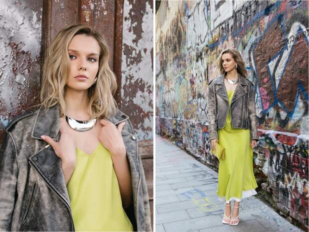 Простота станет элегантной, если прямая макси юбка CLO будет дополнена лаконичным свитшотом. Эта комбинация отлично подойдет и для скромниц, предпочитающих закрытые образы, если захочется привнести нотку кокетства в такой комплект Бельевые топы и юбки отлично дружат с кожаными куртками и жакетами. Это один из самых простых и стильных приёмов. Объёмный жакет придаёт образу структуру, а струящаяся юбка добавляет мягкости. Это идеальный баланс.