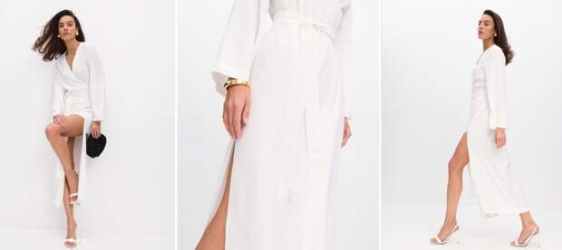 И платье-комбинация, и халат CLO – самостоятельные элементы гардероба. Достаточно дополнить их минималистичными босоножками на каблуке с тоненькими ремешками и клатчем или маленькой сумочкой – и утонченный образ готов.