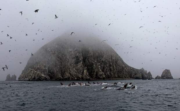 Это северное чудо. Ледяные ветра, воды, беспощадные северные ветра, суровая природа… а еще тут живут касатки и белухи, летают, плавают и строят гнезда на крутых скалах кайры и чистики, приплывают в поисках еды киты. Не так и скучно, правда?