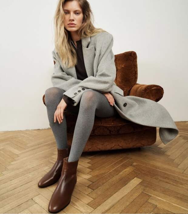 Можно надеть короткую обувь и короткое платье — с фактурными гольфинами разрешено практически всё, даже яркие цвета. Бежевый, серый, капучино, синий или черный? Есть бюджет – возьмите все сразу, чтобы менять их под настроение.