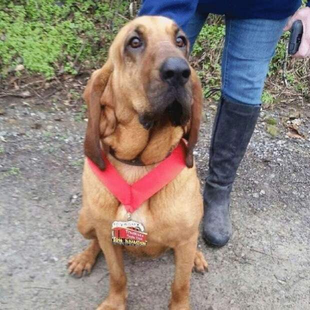 Бладхаунд по кличке Людивин однажды занял седьмое место на полумарафоне в Элкмонте, штат Алабама.
