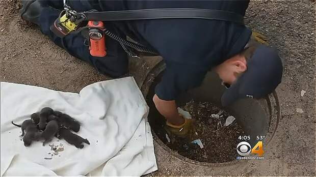Он заметил в водостоке совсем крохотных щенков. Но помочь им самостоятельно у него не получилось.