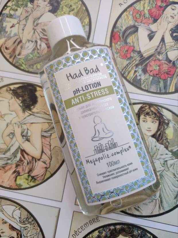 PН-lotion Anti-stress Dr.HadBad очищает кожу от пыли, микробов, избытка кожного сала, «подкисливает» ее и формирует на ней благоприятную микрофлору. Гидролаты розы, ромашки, василька в его составе успокаивают покраснения, тонизируют, способствуют уменьшению отеков. Он снижает чувствительность кожи, увлажняет ее, улучшает барьерные свойства, выравнивает поверхностный рН, подавляет рост патогенной флоры, повышает местный иммунитет, увеличивает выработку церамидов, улучшает упругость и эластичность, уменьшает выраженность морщин. Он же дает антисептическое действие.