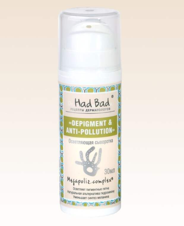 Сыворотка, которая осветляет как имеющуюся пигментацию, так и предотвращает появление веснушек — Depigment&Anti-pollution Dr.HadBad. Ее биологически активная молекула была получена из щавеля. По строению и эффекту она на 20% эффективнее гидрохинона, но не дает токсичного действия на меланоцит. Плюс, она защищает и от несолнечной пигментации, возникающей от действия экзотоксинов городского смога. Она особенно подойдет жителям крупных городов, так как помимо осветления и увлажнения, защищает от проблем кожи, связанных с воздействием экзотоксинов и других повреждающих факторов. Ее эффект — препятствование адгезии (прилипанию) РМ-частиц (мелких твердых частиц) городского смога на коже, нейтрализация тяжёлых металлов и других токсинов.