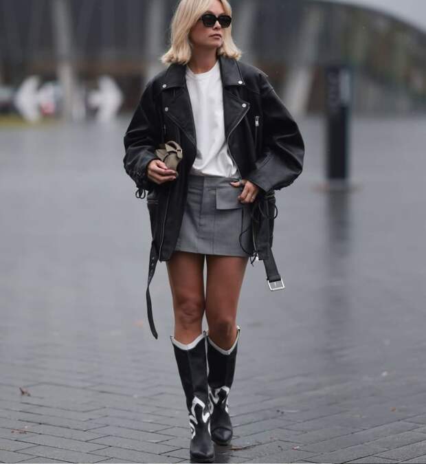 Так сапоги избавились от ковбойского флера. Их добавляют к минималистичным образам: платью-комбинации, прямым джинсам и строгому жакету.