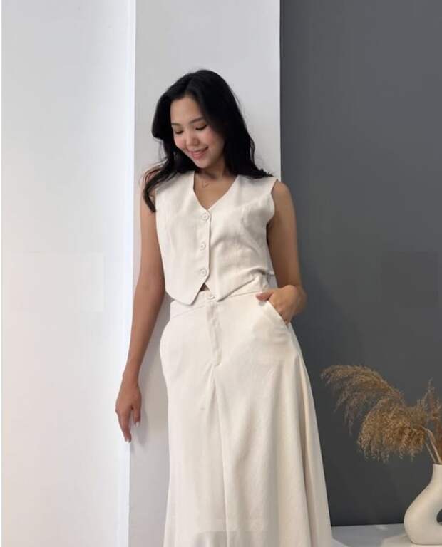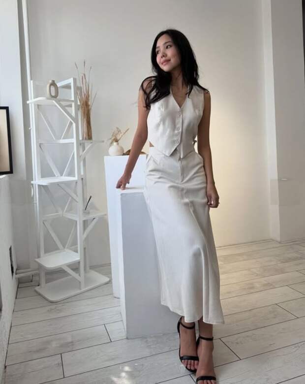 Поэтому лучше искать то, что форму держит и талию акцентирует. Например, приталенный жилет смотрится женственно, и его можно носить в жару.3. Длина миди