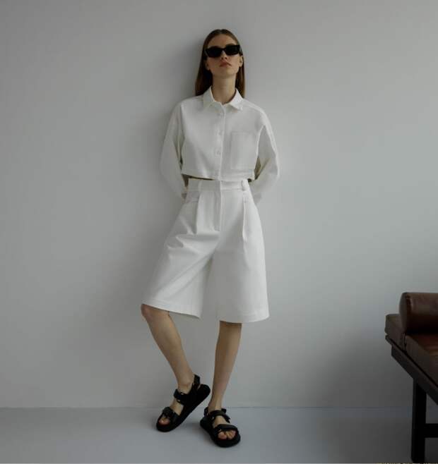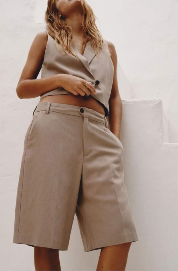 Убирайте рваные мини шортики из денима и замените удлинёнными бермудами из костюмного хлопка или льна. Конечно, с полноценными брюками они не сравнятся, но выглядят презентабельнее джинсовых моделей.