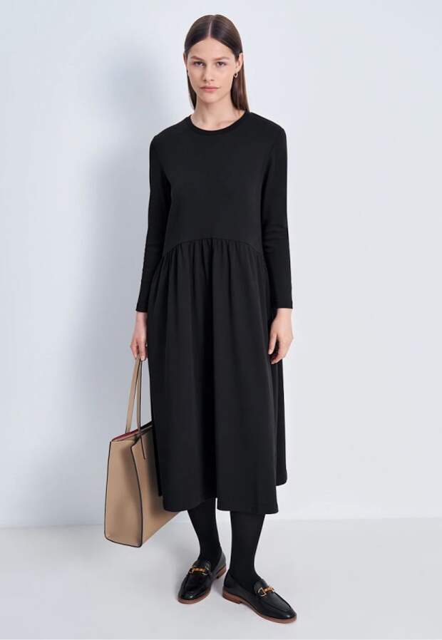 Носите его с высокими сапогами, базовыми сумками и минималистичными аксессуарами.