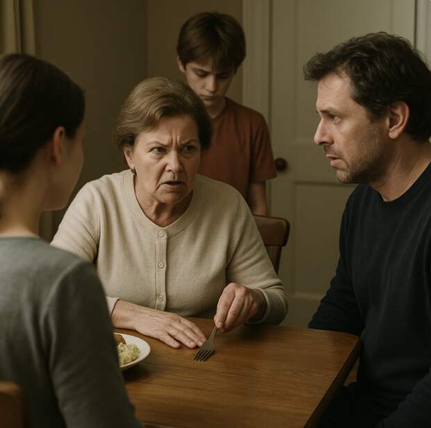 Анна стояла у плиты, помешивая суп, стараясь не подать виду, что слышит каждое слово. За её спиной свекровь нарезала ветчину на тонкие кружки, аккуратно раскладывая их на блюдо — будто нарочно тянула время, чтобы успеть сказать лишнее.