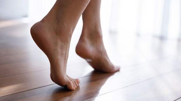Поднимитесь на носки, чтобы пятки оказались в сантиметре от пола, а затем резко опуститесь. Вы должны почувствовать удар как при ходьбе.