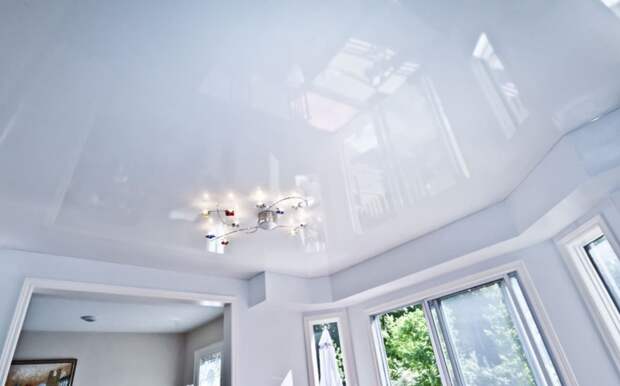 Глянцевый натяжной потолок не увеличивает пространство визуально, а отражаемый им свет раздражает и незаметно портит настроение. Плюс, он катастрофически удешевляет интерьер.