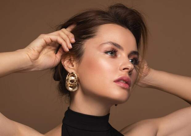 Подчеркивают красоту универсальные и женственные сережки-капельки. Особенно если собрать волосы на затылке. Подойдут гвоздики, кольца-конго, овальные украшения, длинные и короткие колье.