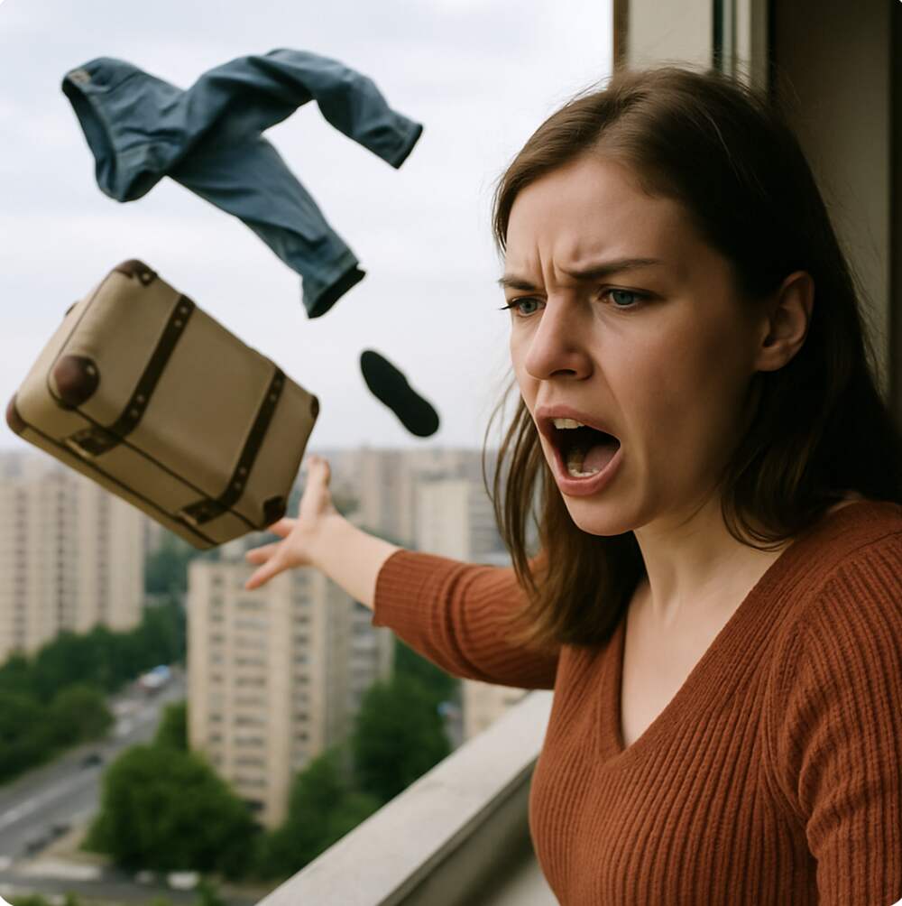 Эффектно выбросила его вещи с восемнадцатого этажа