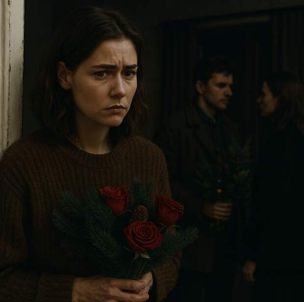Сергей пришёл с букетом хвойных веток и алых роз — улыбался, словно ничего не испортилось. Мира немного успокоилась, надеясь, что вечер всё-таки сохранится.