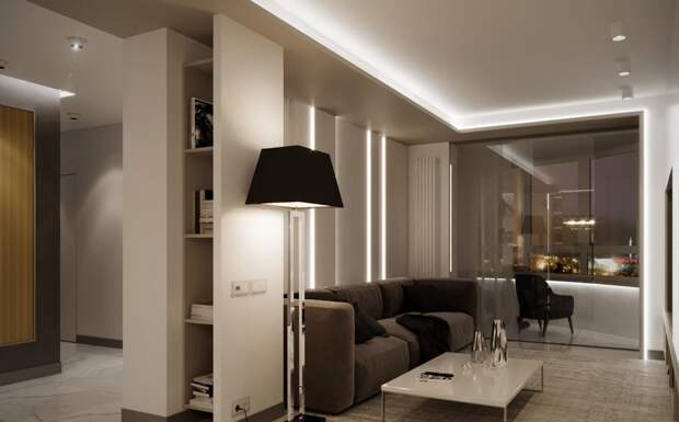 Оно создает атмосферу: направленный свет на картину, подсветка ниши или мягкое освещение за шторами.