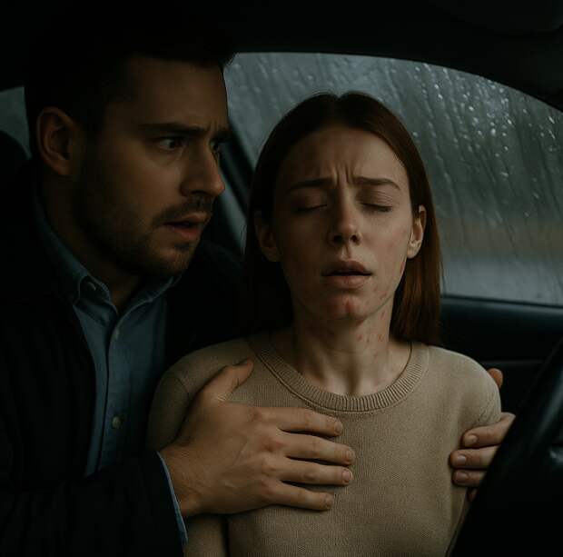 Кирилл понял сразу: аллергия. Он на руках вынес жену и рванул к машине. Дождь хлестал по стеклу, дворники не справлялись, но он мчал, как безумный.