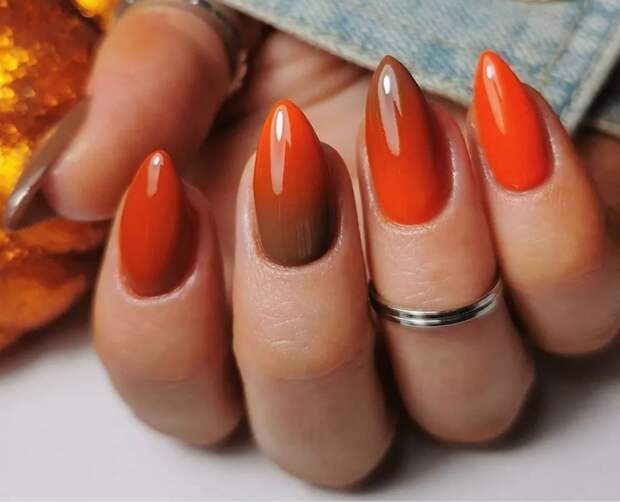 Например, хорошим дополнением к гардеробу станет теплый коричнево-оранжевый градиент.