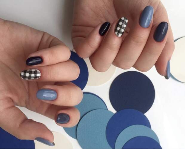 Темно-синие, темно-серые, серо-голубые, светло-тауповые ногти — универсальное решение для осенних образов. Такие цвета будут сочетаться с вашими свитерами, пальто и шерстяными платьями.