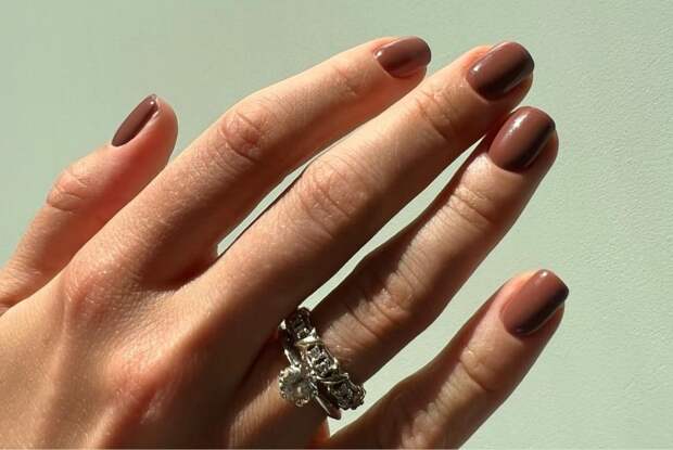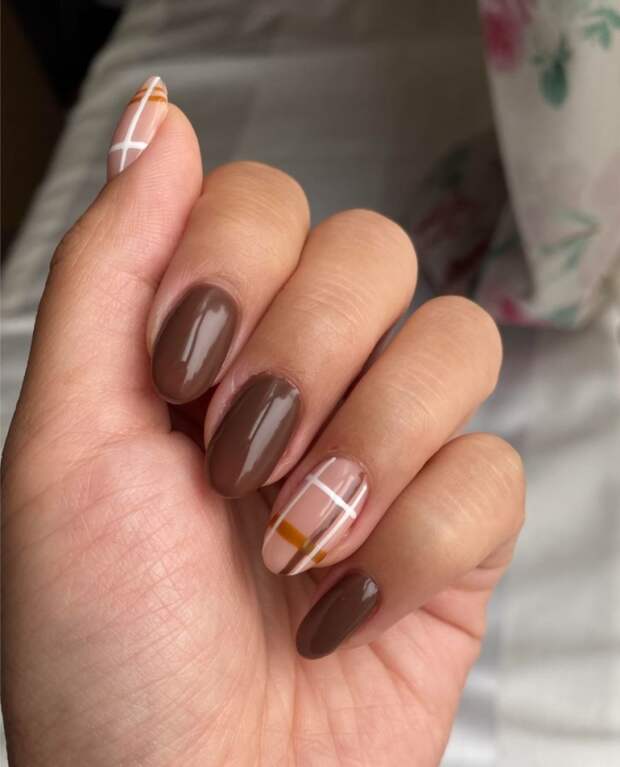 Если хотите яркости в этом же ключе, то попробуйте желто-горчичный цвет. Не представляете жизнь без кофе? Уютный шоколадный маникюр тоже будет в гармонии с сезоном.