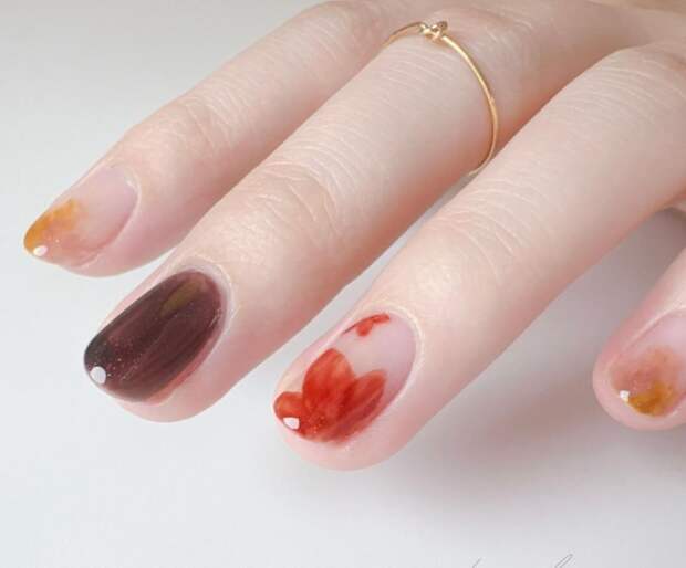 Можете выбрать монохромную гамму или создать теплый, нежный дизайн с коричневым, бордовым и терракотовым оттенками.