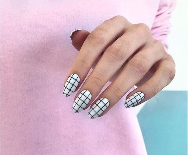 «Клетчатые» ногти добавляют маникюру ретрошарма.