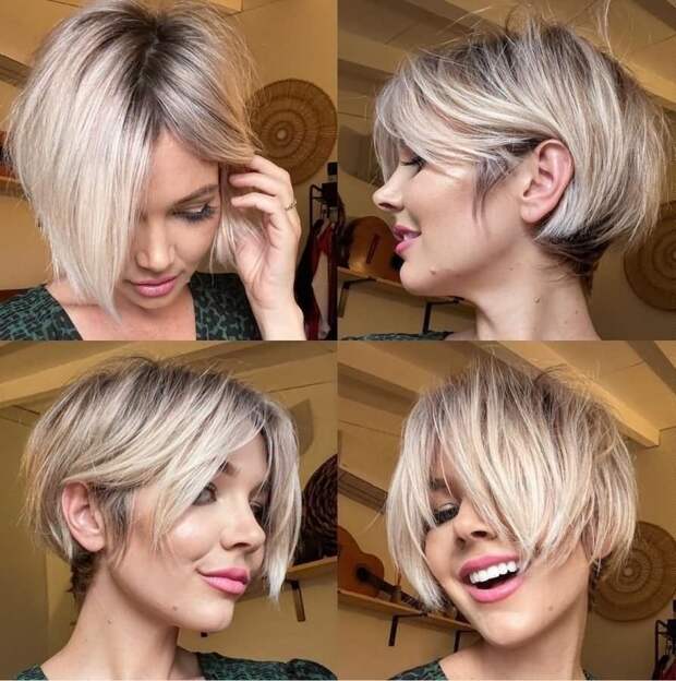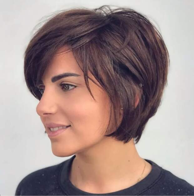 Эта стрижка подходит тем, кто хочет короткую длину, но не готов полностью открывать лицо. У бикси омолаживающий эффект, она визуально увеличивает объем даже у тонких волос, что делает ее популярной среди многих женщин.