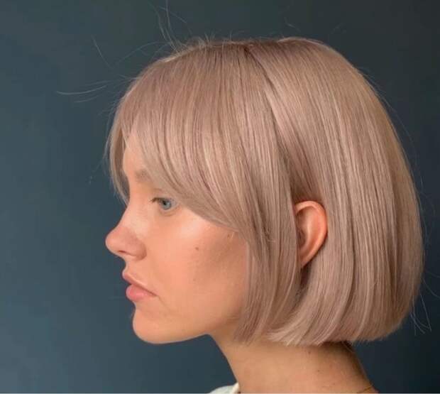 Эта стрижка отличается строгой геометрией и архитектурной выразительностью, подчеркивая черты лица. Ее длина варьируется от мочки уха до скул, создавая сбалансированный силуэт.