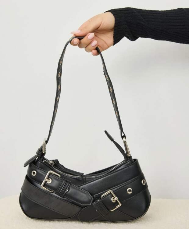 Акцентная сумка вогнутой формы, похожая на печенье, лучше подходит под это определение. Она бывает мягкой или каркасной, у нее необычный силуэт с углами вниз или вверх.