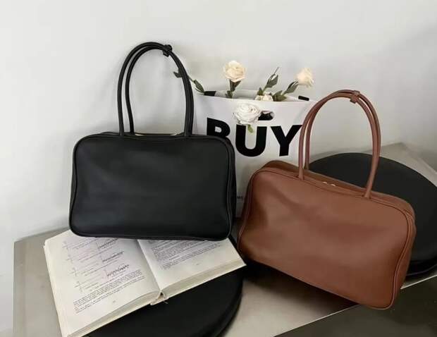 Мягкие или структурные модели вытянутой формы, которые называют багетами — в длину они шире, чем в высоту. Они бывают с короткой и длинной ручкой, чтобы вы могли носить их на плече. Модели в классическом черном варианте и на средней ручке – прямая отсылка к 90-м.