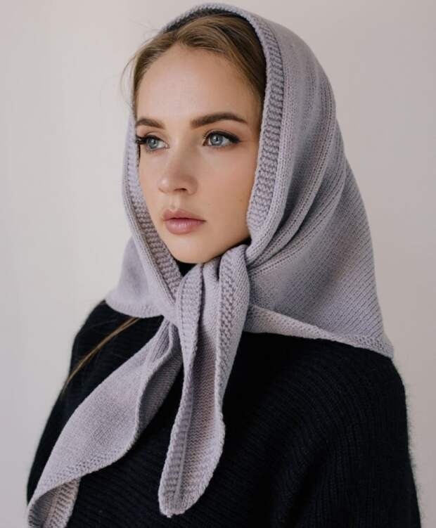 Вязаная косынка — воплощение концепции устойчивой моды, где традиционная ручная вязка и винтажная эстетика сочетаются с современными тенденциями.