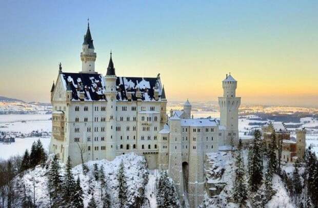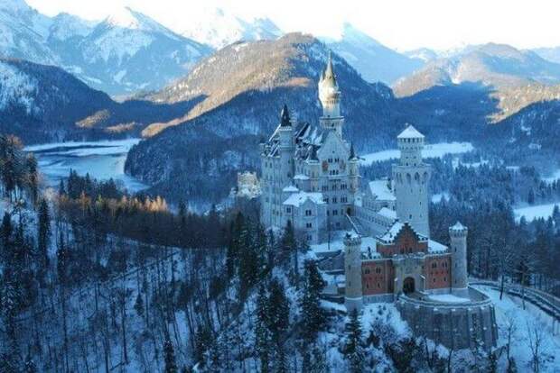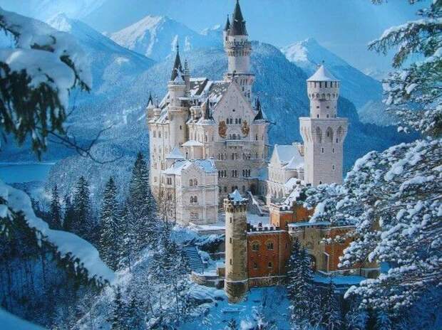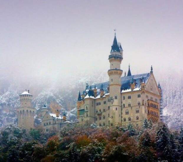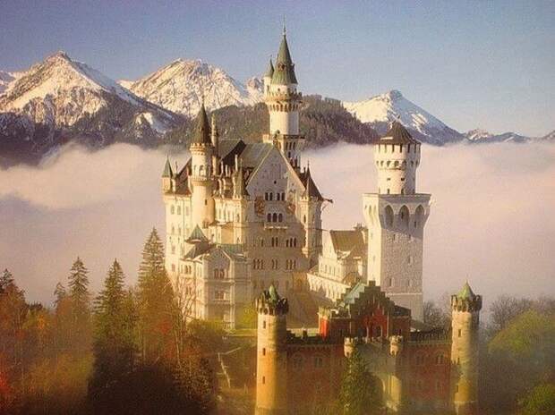 При первом взгляде на этот замок кажется, что кто-то потерял здесь свои игрушки — настолько нереальными кажутся башни Нойшванштайн цвета слоновой кости, видны издали на фоне темно-зеленых елей. Хотя, если подойти поближе — ощущение сказочности вряд ли исчезнет, потому что станут видимыми еще сотни мелочей, совершенно не вписываются в реальность альпийских склонов, придающих фон этой немецкой сказке …