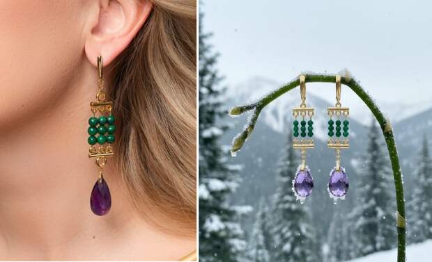 ✓ Для сцены или бизнес-встреч: яркие серьги с акцентными камнями или брошь. Малахит и гранат зададут тон и помогут удержать внимание;