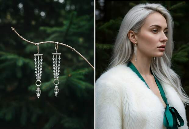 ✓ Когда вы ищете лёгкости и кокетливости — ищите колье и изящные серьги-петли. Например, колье «Пламя жрицы» или серьги «Изумрудное объятие» создают в образе ощущение полёта и свободы;