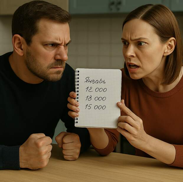— Смотри! Январь — двенадцать тысяч. Февраль — восемнадцать. Март — пятнадцать. И так каждый месяц! А вот траты на детей: январь — три тысячи, февраль — две с половиной. Чувствуешь разницу?