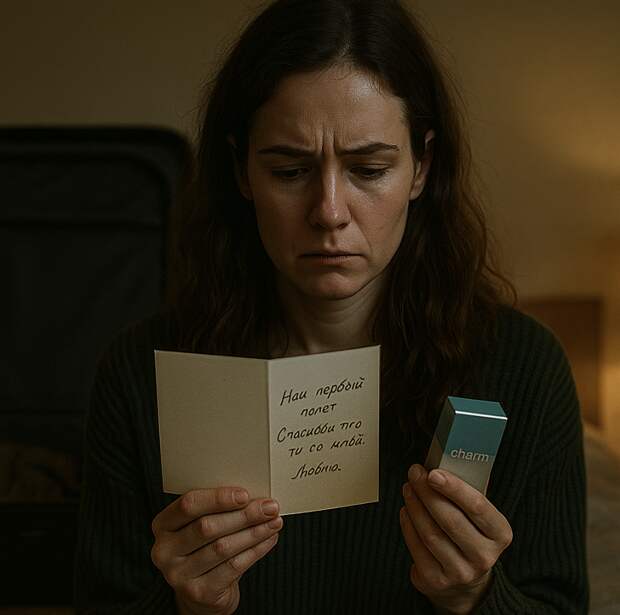 Дома она проверила чемодан мужа. В боковом кармане лежала коробка с духами и открытка: