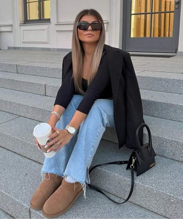 А если вы любите расслабленный стиль, то UGG сочетаются и с непринужденными джинсами-бойфрендами. Их свободный крой вместе с угги подчеркнет неформальный характер образа.